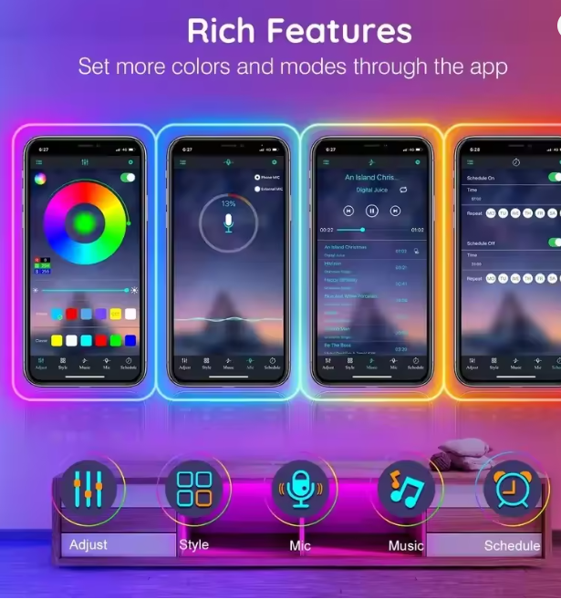 RGB-Farbwechsel, App-Steuerung, Musik-Synchronisation, USB-Stromversorgung, Desktop-Umgebungsbeleuchtung, TV-LED-Hintergrundbeleuchtung